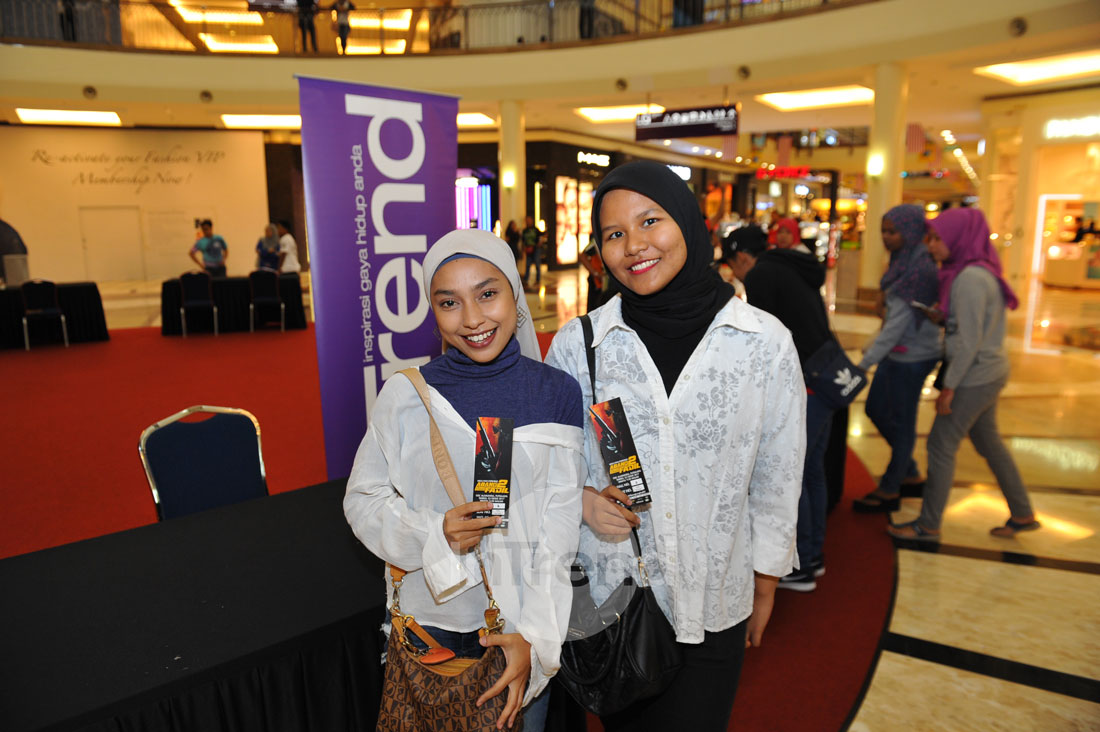 Sambil mendengar celoteh sang pegacara, para peminat mulai beratur bagi mendapatkan tiket yang dimenangi menerusi peraduan yang diadakan sebelum ini. Untuk InTrend, kami memberi peluang kepada 40 pembaca untuk memenangi tiket percuma sekali gus menyertai malam tayangan eksklusif ini.