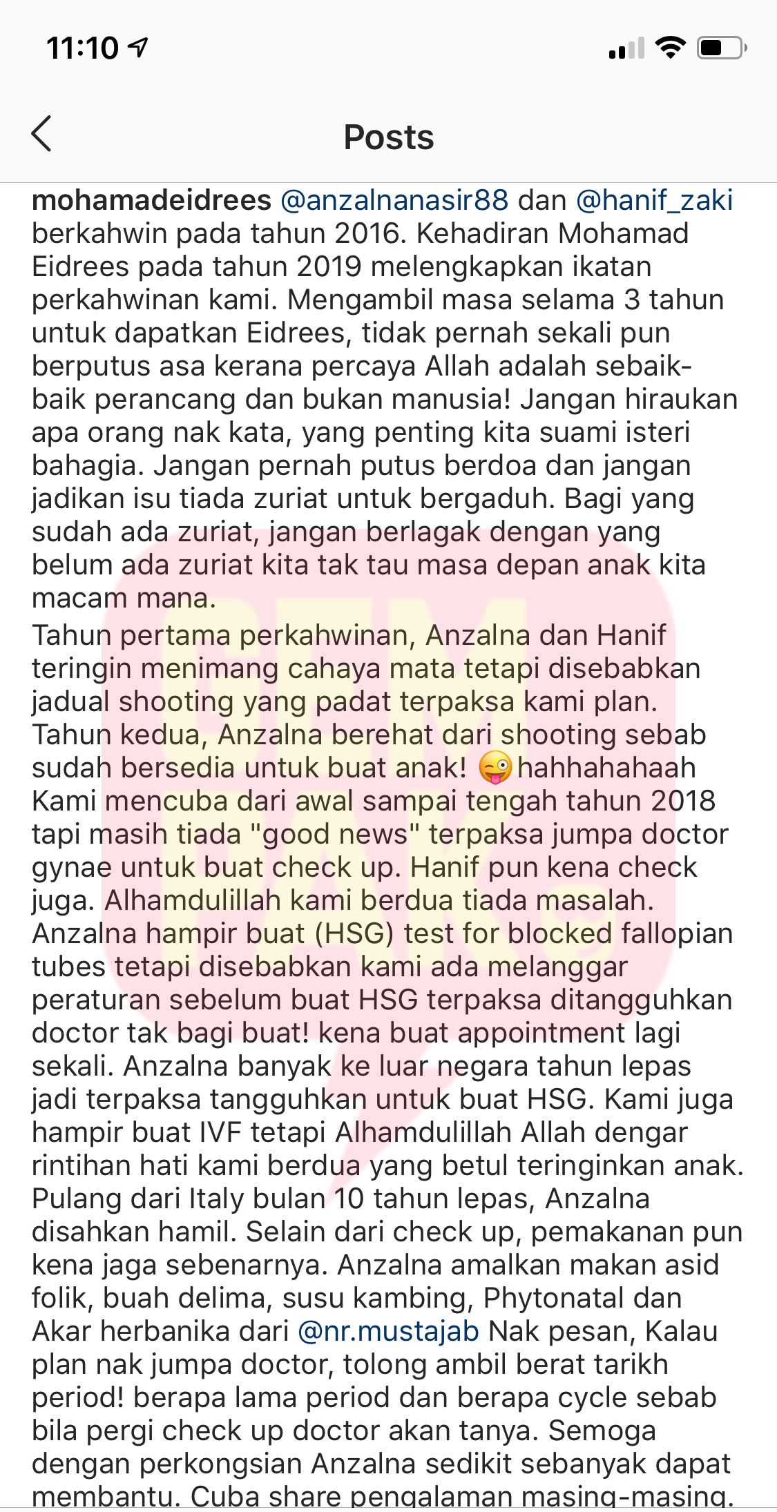 "Pulang dari Italy bulan 10 tahun lepas, Anzalna disahkan hamil. Selain dari check up, pemakanan pun kena jaga sebenarnya. Anzalna amalkan makan asid folik, buah delima, susu kambing, Phytonatal dan Akar herbanika dari @nr.mustajab.