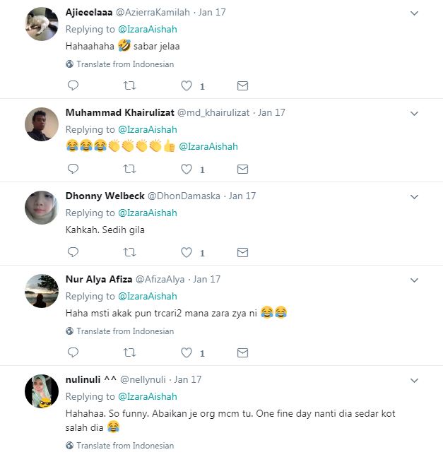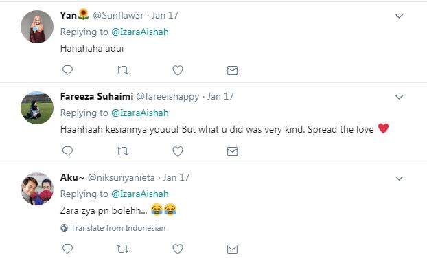 Entri yantg dimuat naik di laman Twitter Izara itu mendapat lebih 500 'retweets' dan lebih 1300 'likes'.