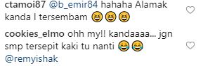 Dalam pada itu menerusi ruangan komen, rata-rata peminatnya mengusik Remy tentang insiden itu selain meminta pelakon itu berhati-hati.