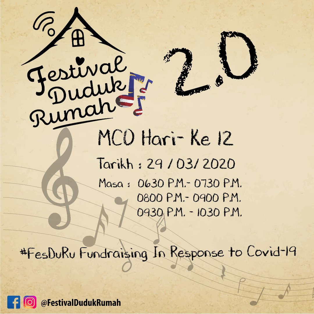 Pada 22 Mac yang lalu, satu festival muzik percuma yang diberi nama Festival Duduk Rumah (FesDuRu) telah berjaya diadakan untuk mengumpul dana bagi membantu mereka yang berada di barisan hadapan (frontliners) untuk mengekang penularan wabak COVID-19.