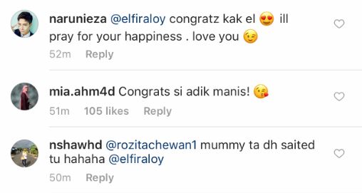 Dalam pada itu, pengikut Instagram Elfira juga tidak ketinggalan membalas komen Che Ta dengan komen-komen lucu.
