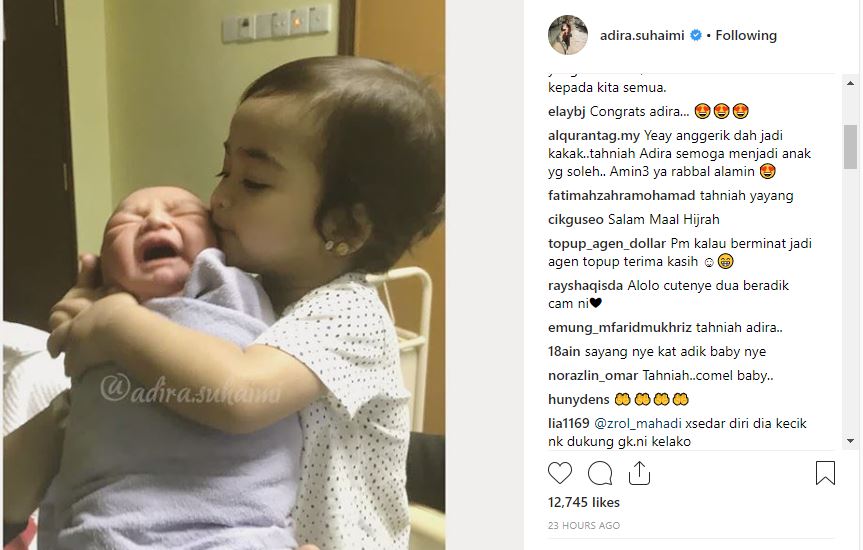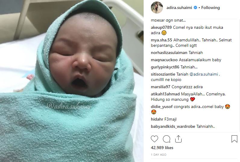 Menerusi akaun Instagram (IG)nya, Adira turut memperkenalkan nama puteranya itu dengan menggunakan hashtag #asan.