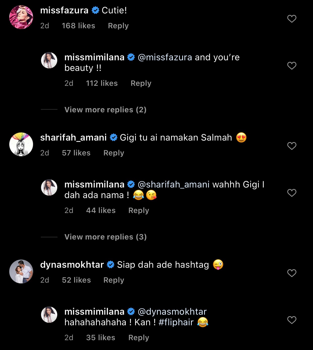 Bagaimanapun menerusi ruangan komen rata-rata pengikutnya menyukai aksi comel Mimi dan terhibur dengan gelagat aktres cantik itu.