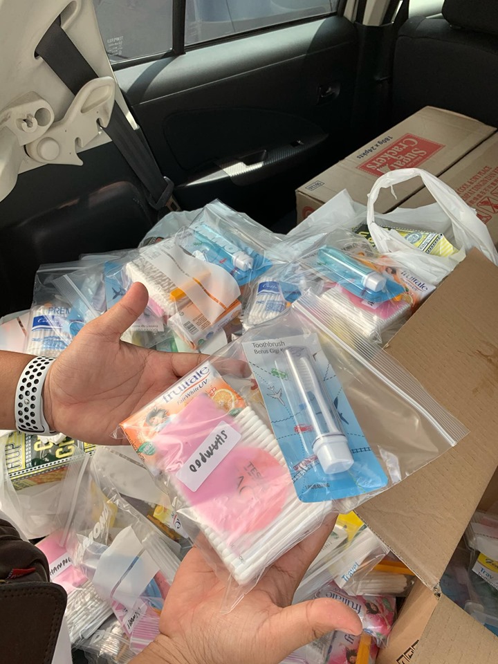 Antara sumbangannya termasuklah makanan, minuman serta kit keselamatan.
