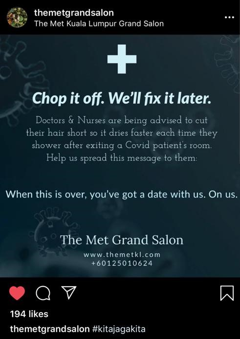 "Doktor dan jururawat dinasihat supaya memotong rambut pendek supaya ia lebih cepat kering selepas mandi," kata pengendali akaun tersebut.