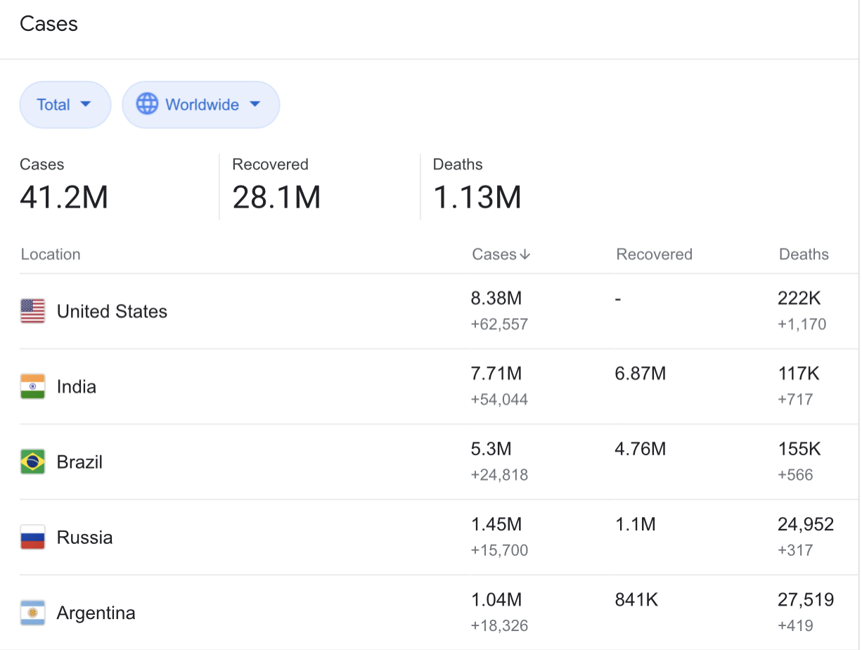 Untuk pengetahuan, Amerika Syarikat masih di kedudukan pertama dengan kes tertinggi COVID-19 iaitu 8.3 juta dengan sebanyak 222,000 kematian direkodkan.