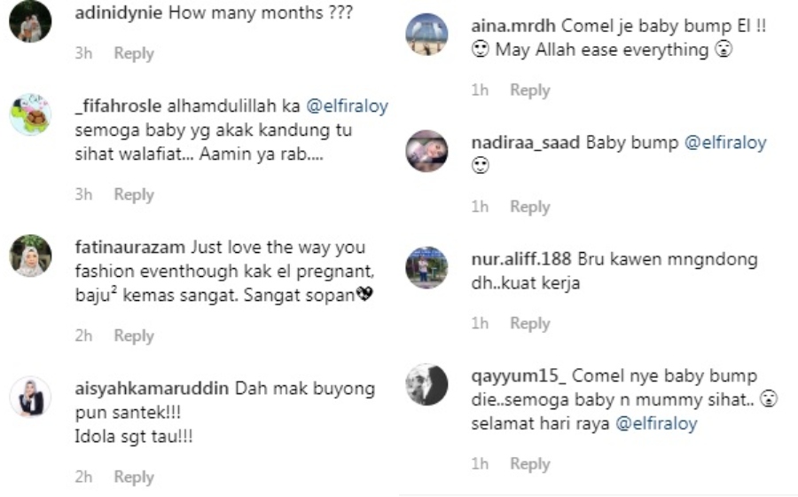 Malah, ada peminat yang memuji wajah Elfira yang kelihatan semakin cantik, lebih-lebih lagi ketika sedang berbadan dua.