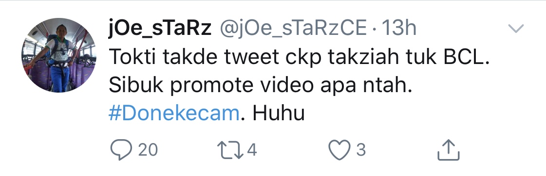 Perkara itu dibangkitkan oleh seorang netizen di laman Twitter yang mengatakan Siti tidak mengucapkan takziah kepada BCL disebabkan kesibukan mempromosi muzik video.