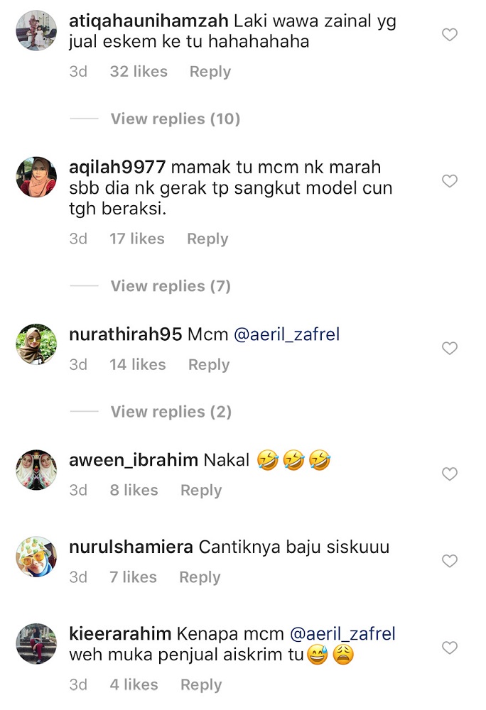 Ruangan komen entri tersebut dibanjiri dengan tindakan netizen yang menyamakan wajah lelaki itu dengan Aeril.