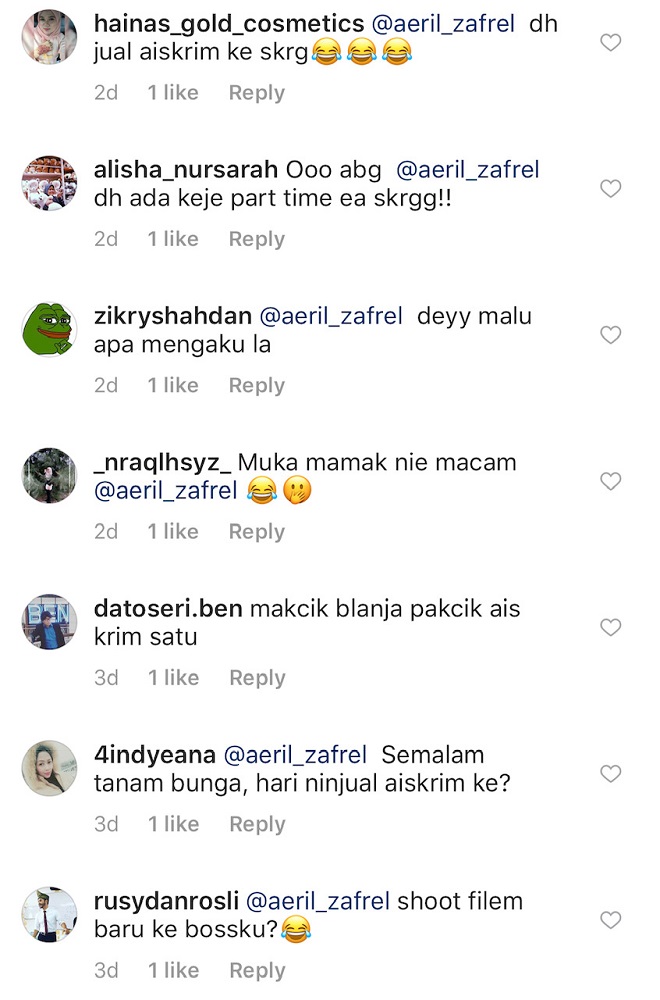 Berkongsi gambar dirinya yang sedang 'posing' bersama seorang lelaki penjual ais krim, ramai peminat yang mengatakan wajah lelaki hitam manis itu mirip pelakon Aeril Zafrel.