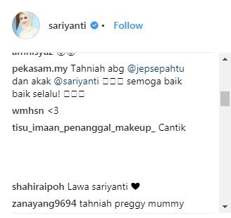 Biarpun berita mengenai kehamilan itu belum disahkan sendiri oleh Sari dan suaminya, pelawak dan penyampai radio Jep Sepahtu, laman Instagram pelakon cantik itu telah mula dihujani dengan ucapan tahniah.