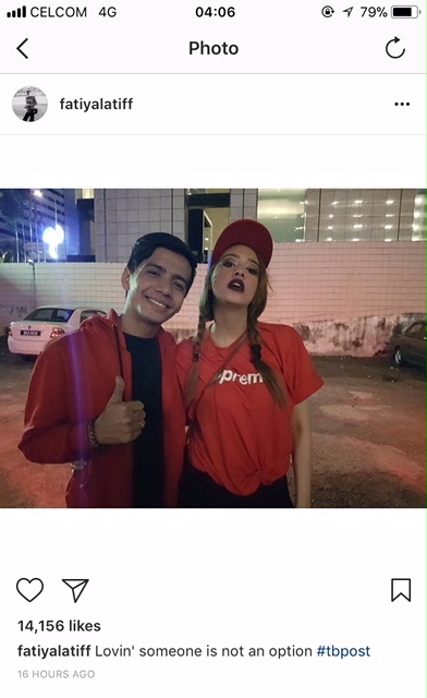 “Hairan betul aku ni Miss K sebab posting Shahrizan memakai baju sama berwarna merah seperti dalam fotonya bersama Fathia adalah pada 4 hari lalu.