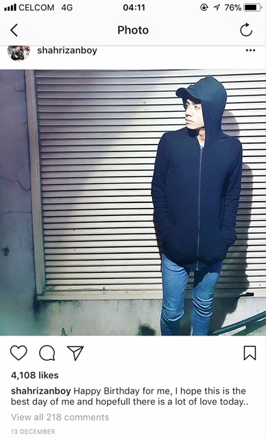“Dekat Instagram Shahrizan tu, ada posting ‘happy birthday to me’, tapi tarikhnya adalah pada 13 Disember yang lepas.