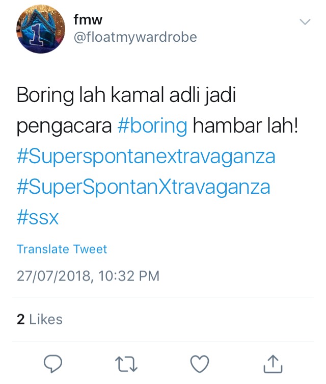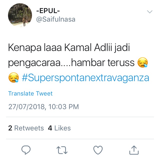 Pelakon Kamal Adli telah menerima kritikan netizen apabila menggantikan Datuk AC Mizal sebagai pengacara program Super Spontan Extravanganza (SSX) yang berlangsung malam tadi.