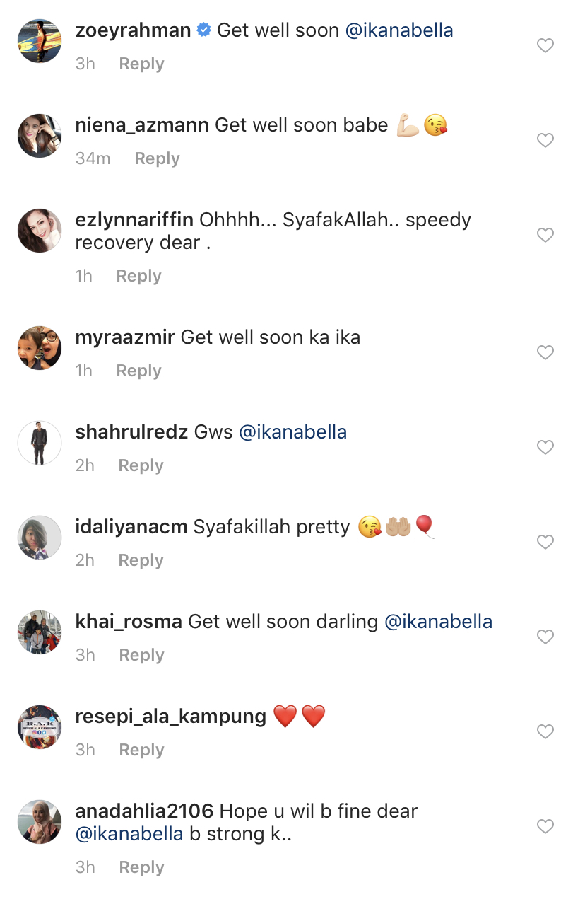 Rata-rata peminat meninggalkan komen dengan mendoakan semoga Ika cepat sembuh dan kembali sihat seperti biasa.