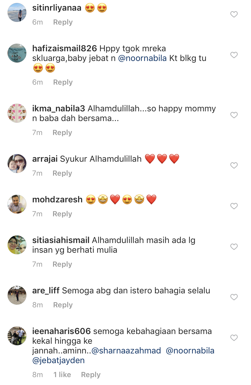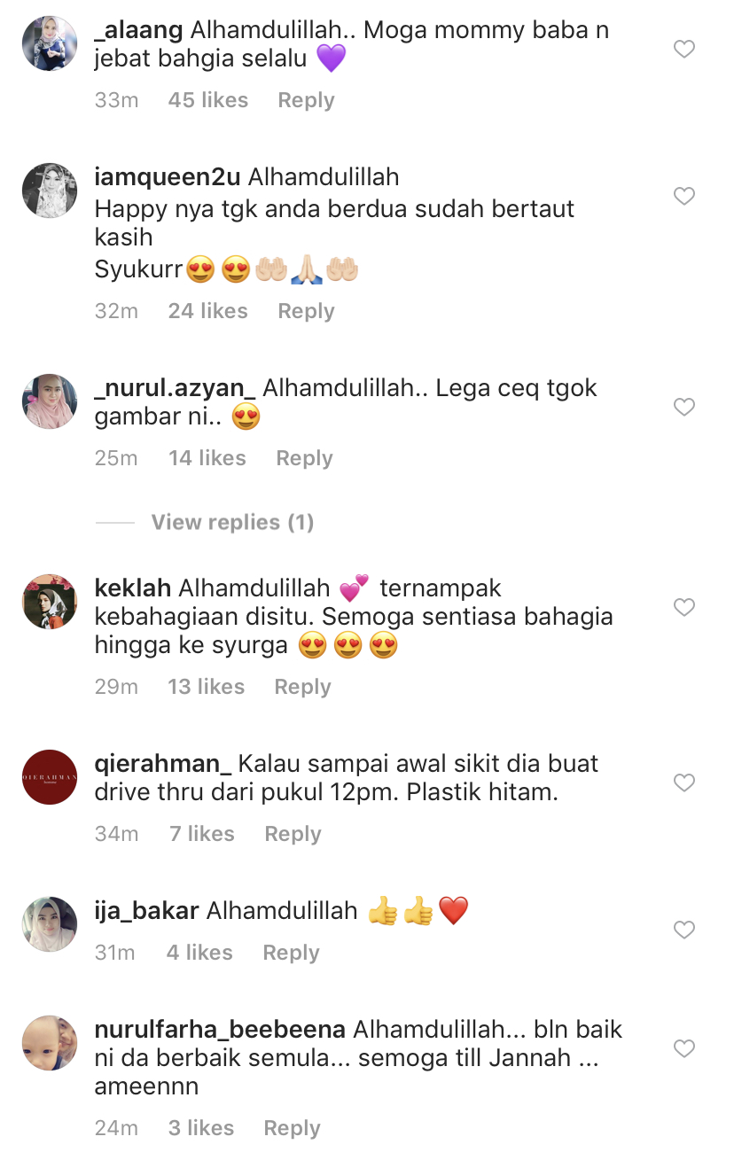 Malah, terdapat segelintir peminat yang mendoakan semoga kebahagiaan keluarga ini kekal selamanya.