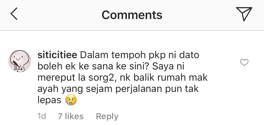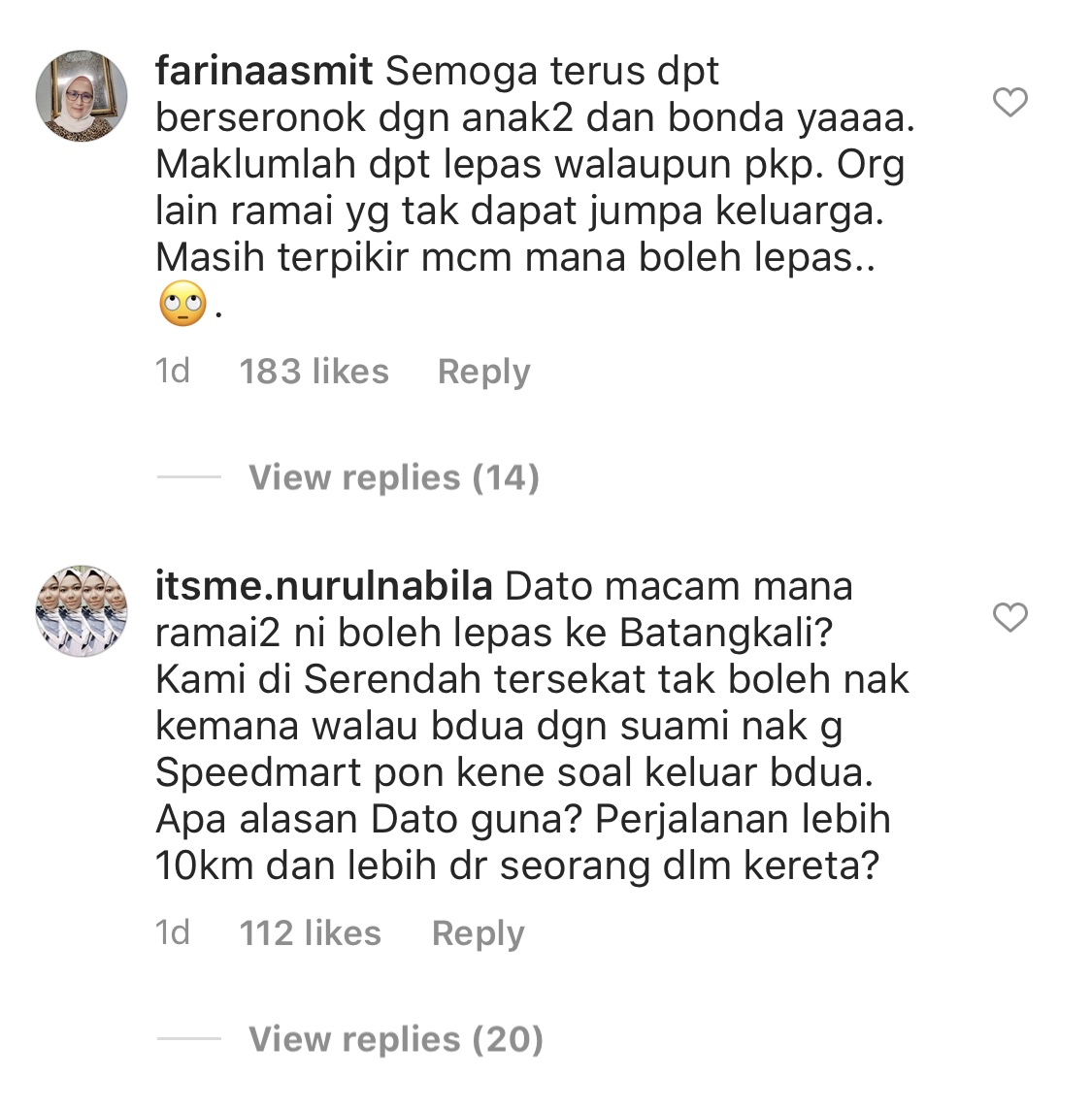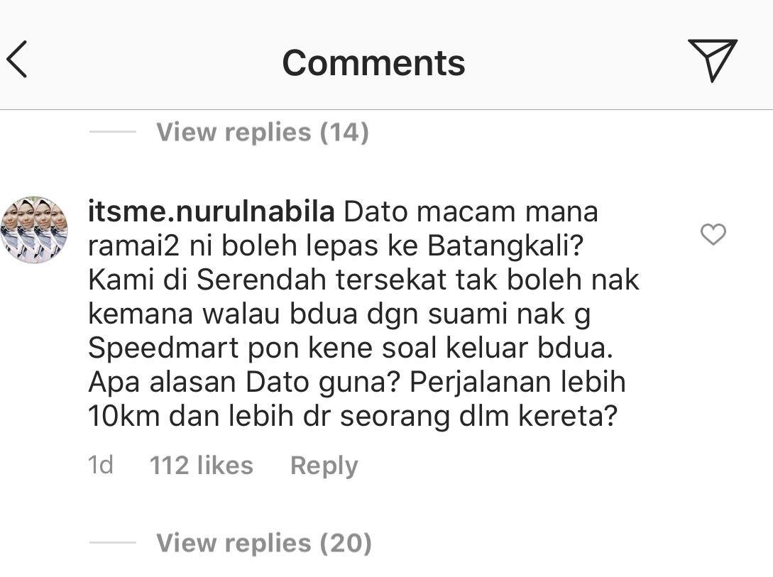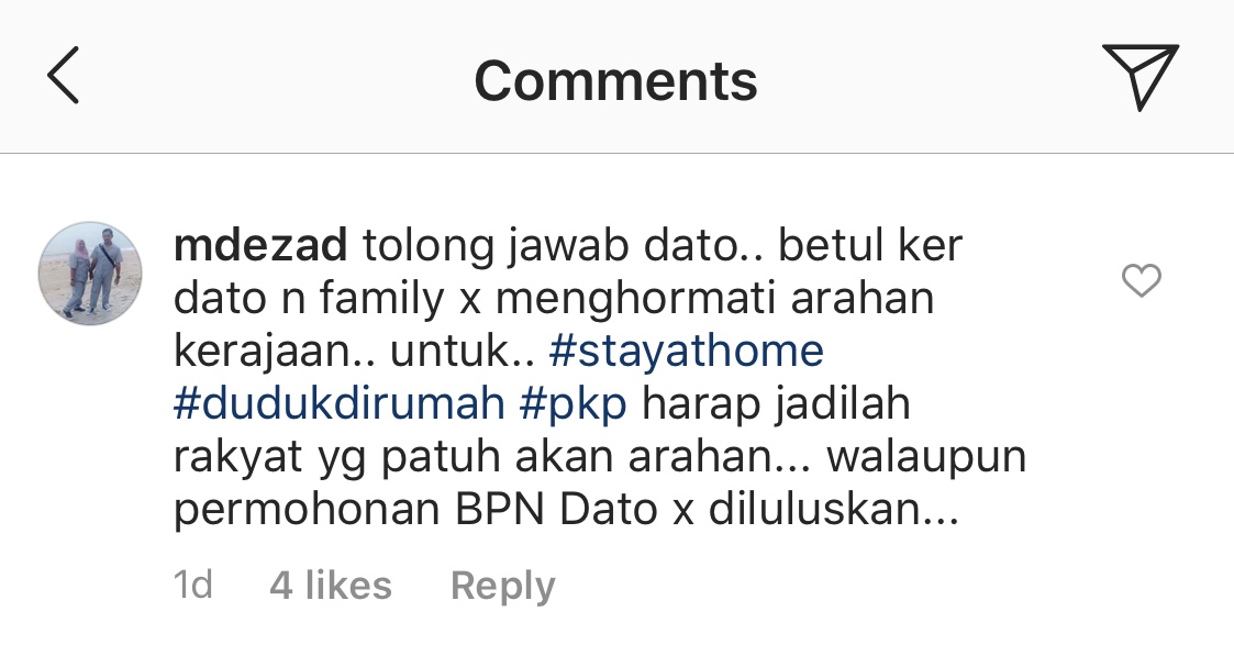 "Tolong jawab Datuk, betul ke Datuk dan keluarga tak menghormati arahan kerajaan untuk #stayathome.