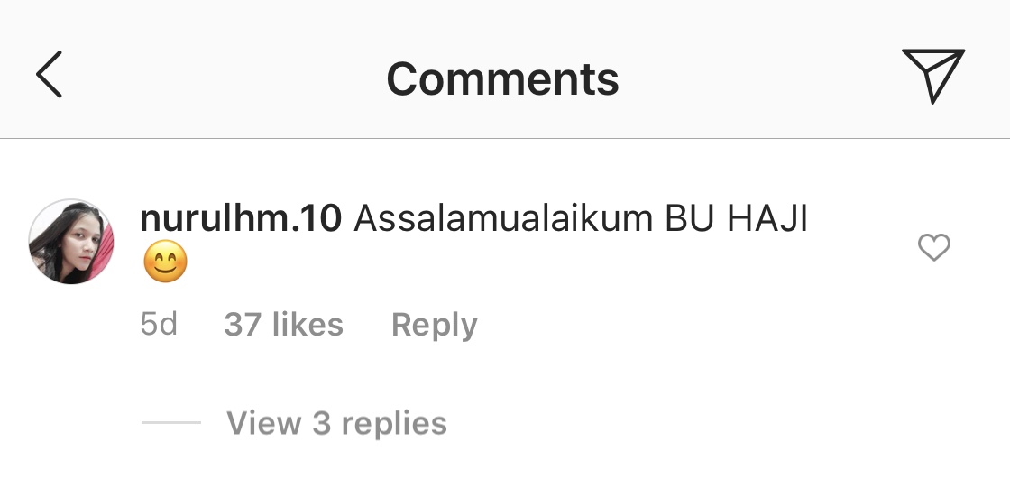 Perkongsian di Instagram itu mendapat reaksi sinis dari segelintir wargamaya kerana pelakon Bawang Merah Bawang Putih itu bergelar Hajjah sejak dua tahun lalu.