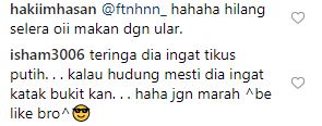 Hilang selera, geli dan takut, itulah antara komen-komen yang diberikan peminat sebaik melihat tindakan berani Zizan itu.