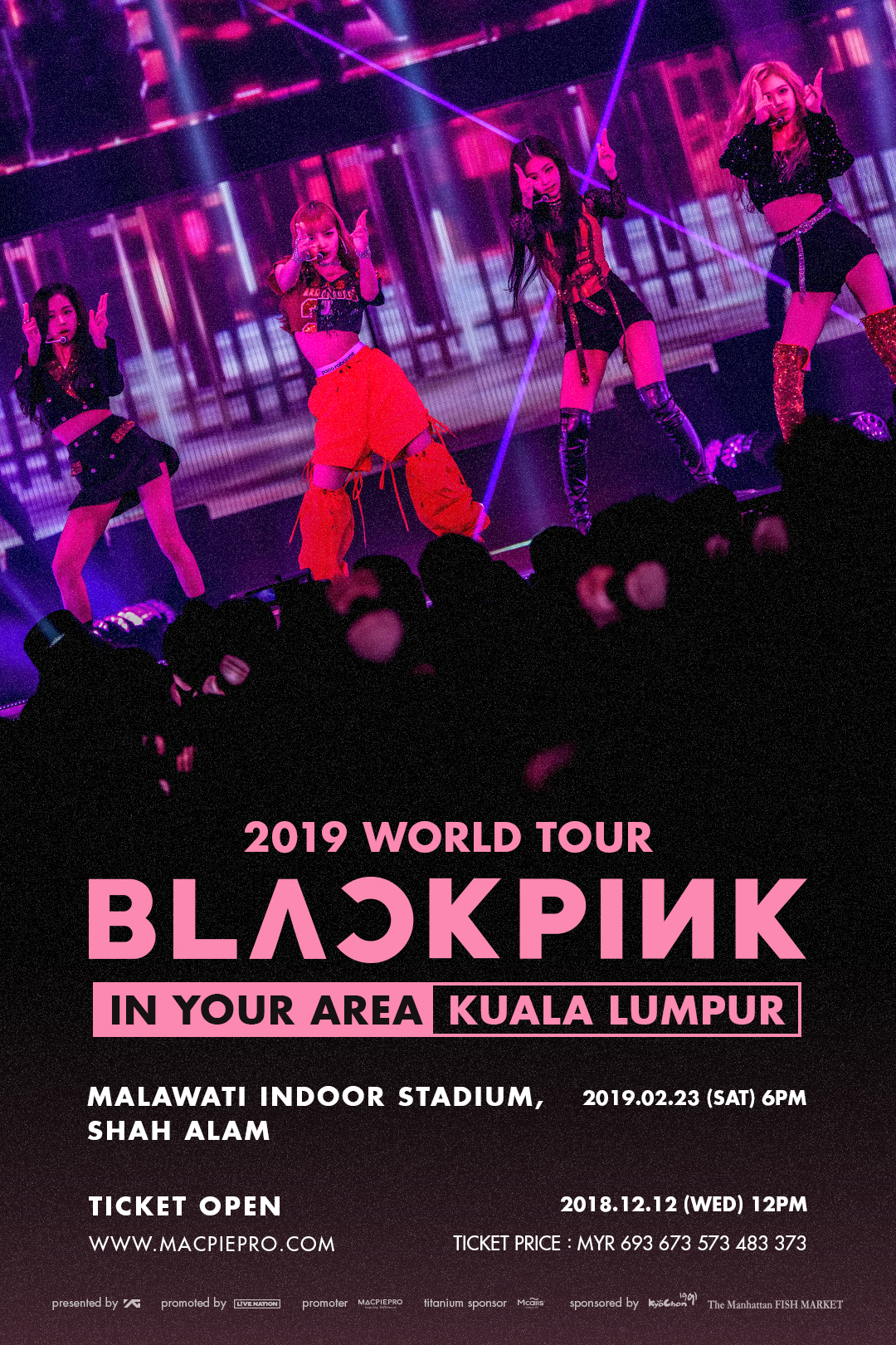 BLACKPINK 2019 World Tour [In Your Area] Kuala Lumpur bakal berlangsung pada pada 23 Februari 2019 bertempat di Stadium Malawati, Shah Alam bermula jam 6 petang.
