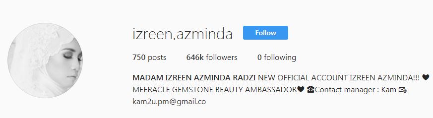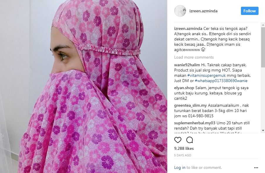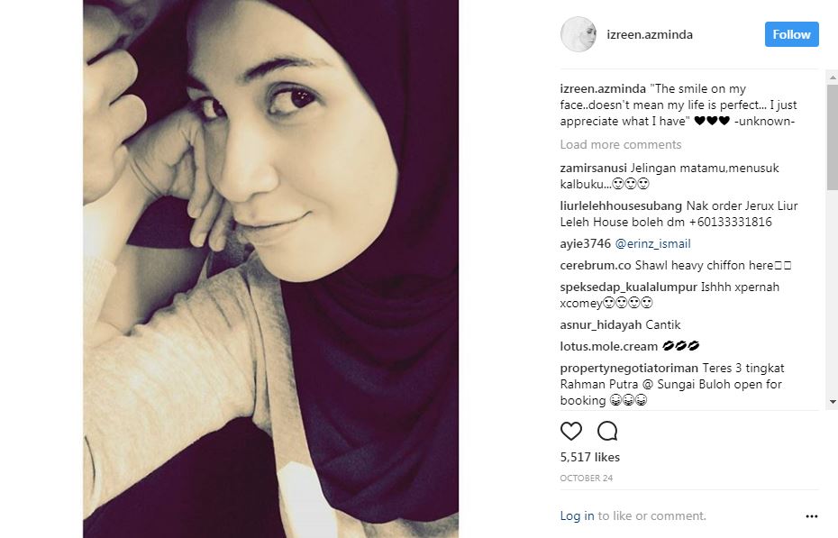 Semenjak dua menjak ni, suka betul Miss K tengok laman Instagram milik pelakon cantik, Izreen Azminda.