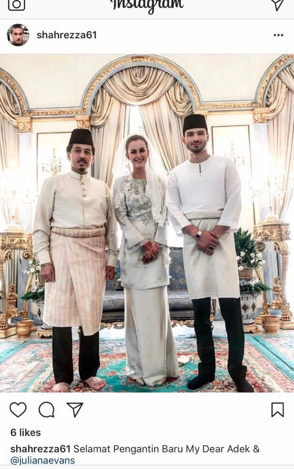Pelakon otai, Datuk Seri Shah Rezza turut berkongsi foto perkahwinan Juliana dan suami di laman Instagram miliknya.