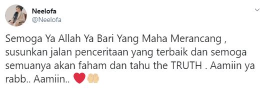 Selain itu, menerusi satu lagi tweet yang ditulis Neelofa, dia berharap agar segala urusan yang melibatkan keluarganya dipermudahkan oleh Tuhan.