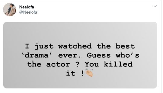 "Saya baru sahaja menonton ‘drama’ terbaik. Cuba teka siapakah aktor tersebut? You killed it!"