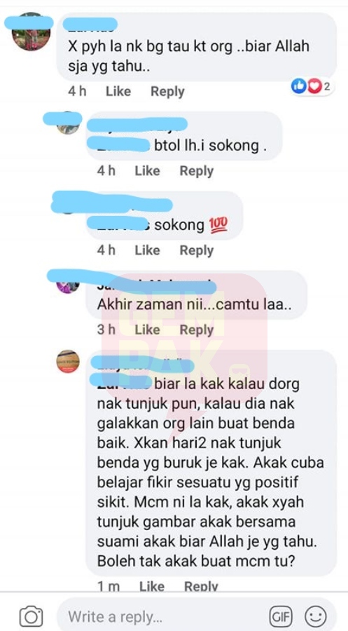 Antaranya, yang mendakwa aktiviti seumpama itu tak perlu dipamerkan kepada orang ramai sebaliknya dilakukan secara senyap, biar Allah sahaja yang tahu.