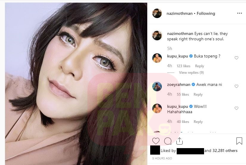 Foto terbabit mendapat pelbagai reaksi netizen dan pengikut laman Instagram Nazim.