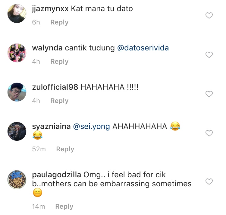 DSV memuat naik video tersebut di laman Instagram miliknya, @datoserivida bersama kapsyen: “Nak girl girl-kan Cik B. Haha.”