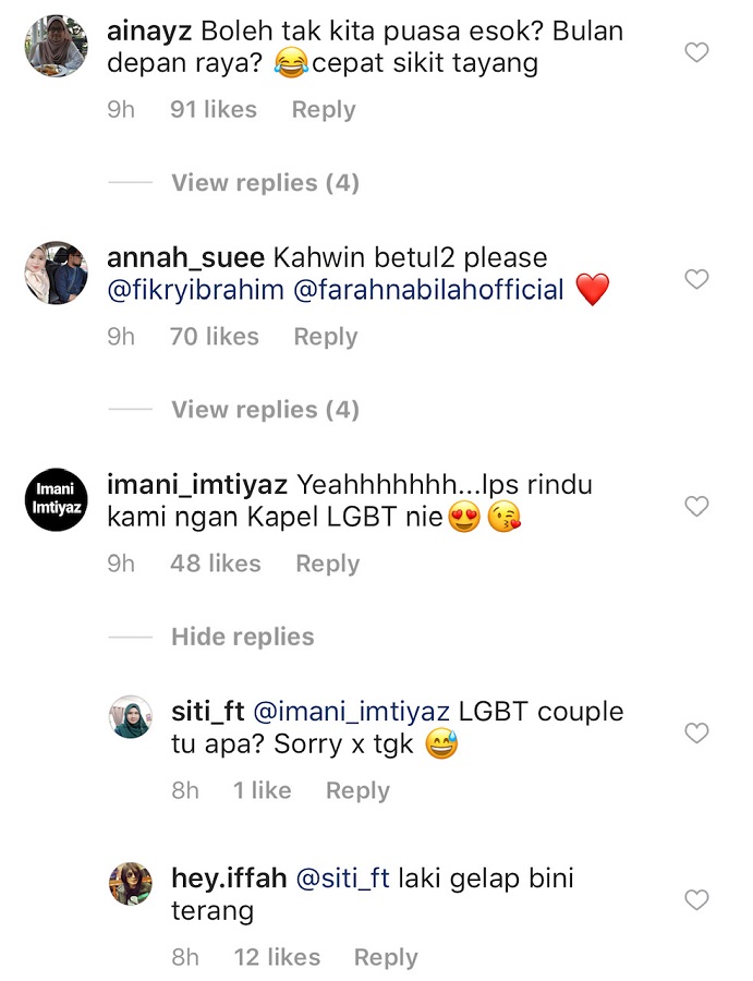 Malah, ada juga peminat yang menggelarkan mereka pasangan LGBT yang membawa maksud 'laki gelap, bini terang'.
