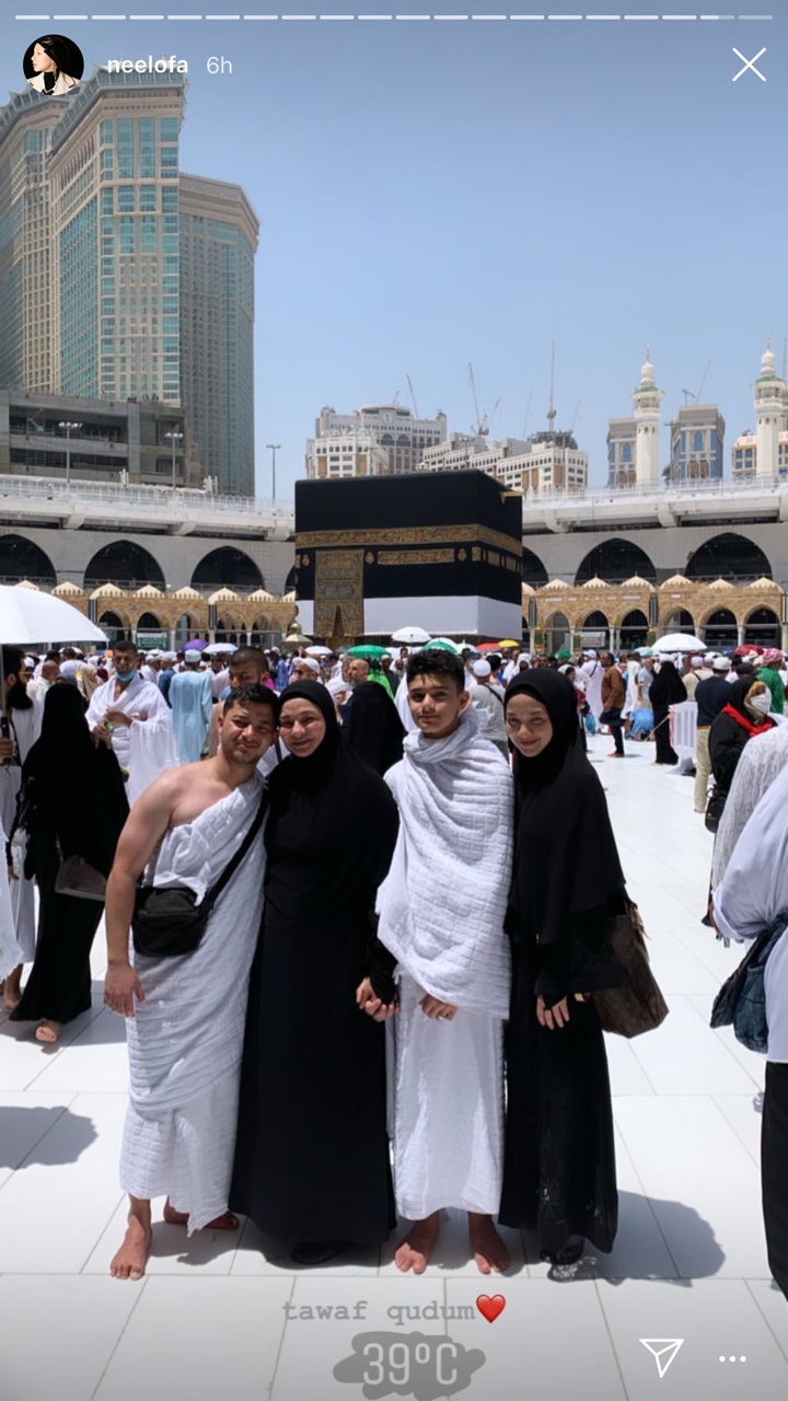 Pemergian Neelofa ke Tanah Suci turut diiringi ibunya, Datin Noor Kartini serta dua adik lelakinya, Mohamed Aqief dan Mohamed Faliq.