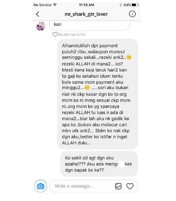 Menerusi entri yang dimuat naik Rita pagi tadi, dia memberitahu terpanggil untuk membalas mesej peribadi tersebut kerana berasakan apa yang ditulis pengguna laman sosial tersebut keterlaluan sehingga tahap menghina punca rezekinya.