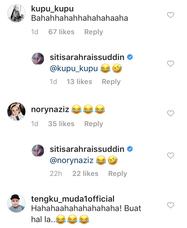 Di ruangan komen, rata-rata netizen berasa terhibur dengan gelagat pasangan suami isteri itu.