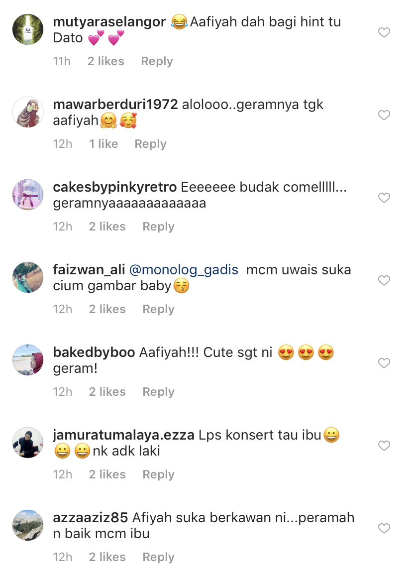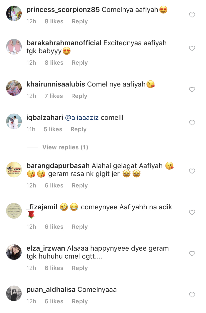 Rata-rata mengakui terhibur melihat gelagat Aafiyah dan mereka juga tidak melepaskan peluang untuk mengusik Siti serta turut mendoakan Aafiyah akan mendapat adik nanti.