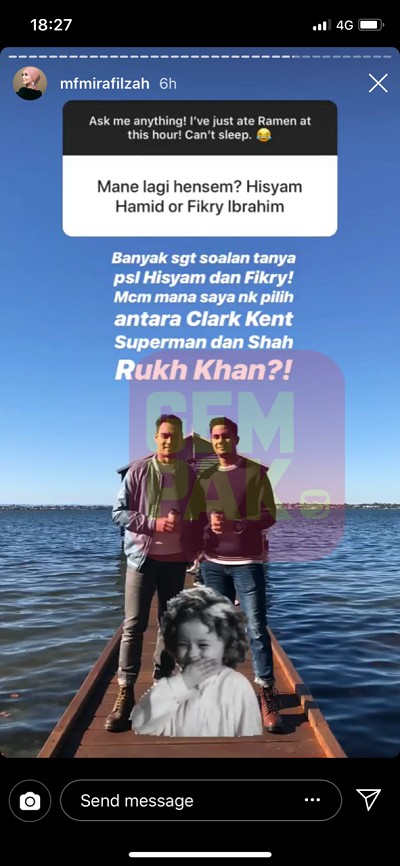 Selain itu, Mira turut menjawab beberapa soalan lain mengenai Aliff Aziz, Fikry Ibrahim dan Hisyam Hamid.