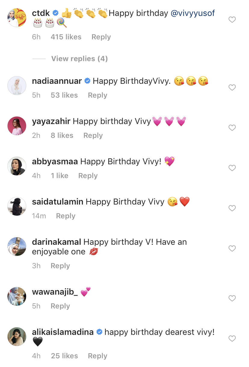 Rata-rata pengikut turut sama menyampaikan ucapan kelahiran serta mendoakan yang baik-baik kepada Vivy.