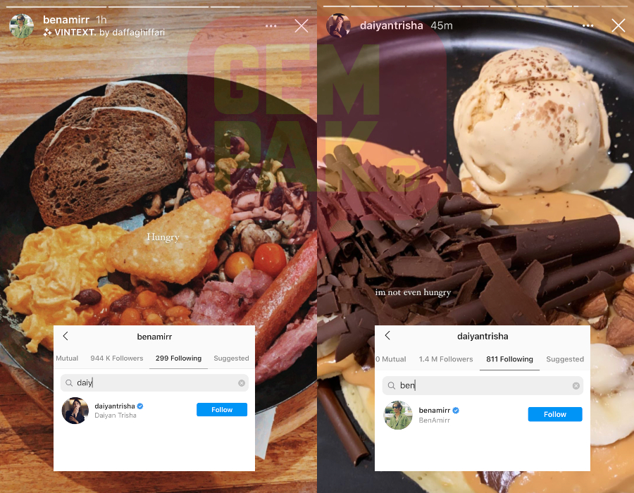 Sekarang ni pun Ben dan Daiyan sudah follow akaun Instagram masing-masing.