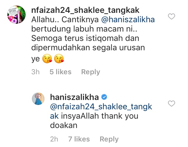 Rata-rata peminat memuji kecantikannya apabila mengenakan hijab labuh, malah ada yang berharap semoga Hanis terus beristiqamah.