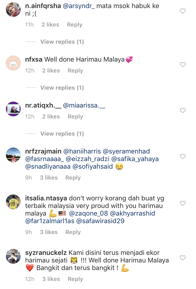"Terima kasih atas sokongan seluruh menyokong Harimau Malaya. Kami telah melakukan yang Terbaik.