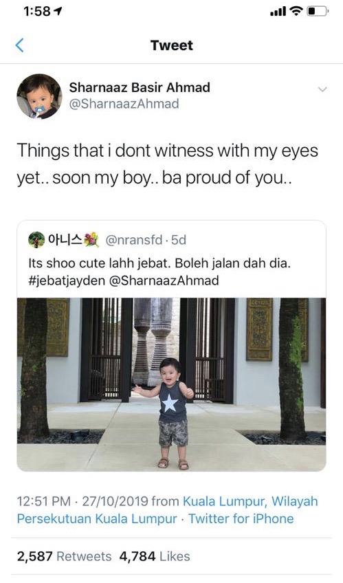 Pelakon Sharnaaz Ahmad meluahkan rasa sedih apabila terlepas melihat perkembangan terkini anaknya, Jebat Jayden.