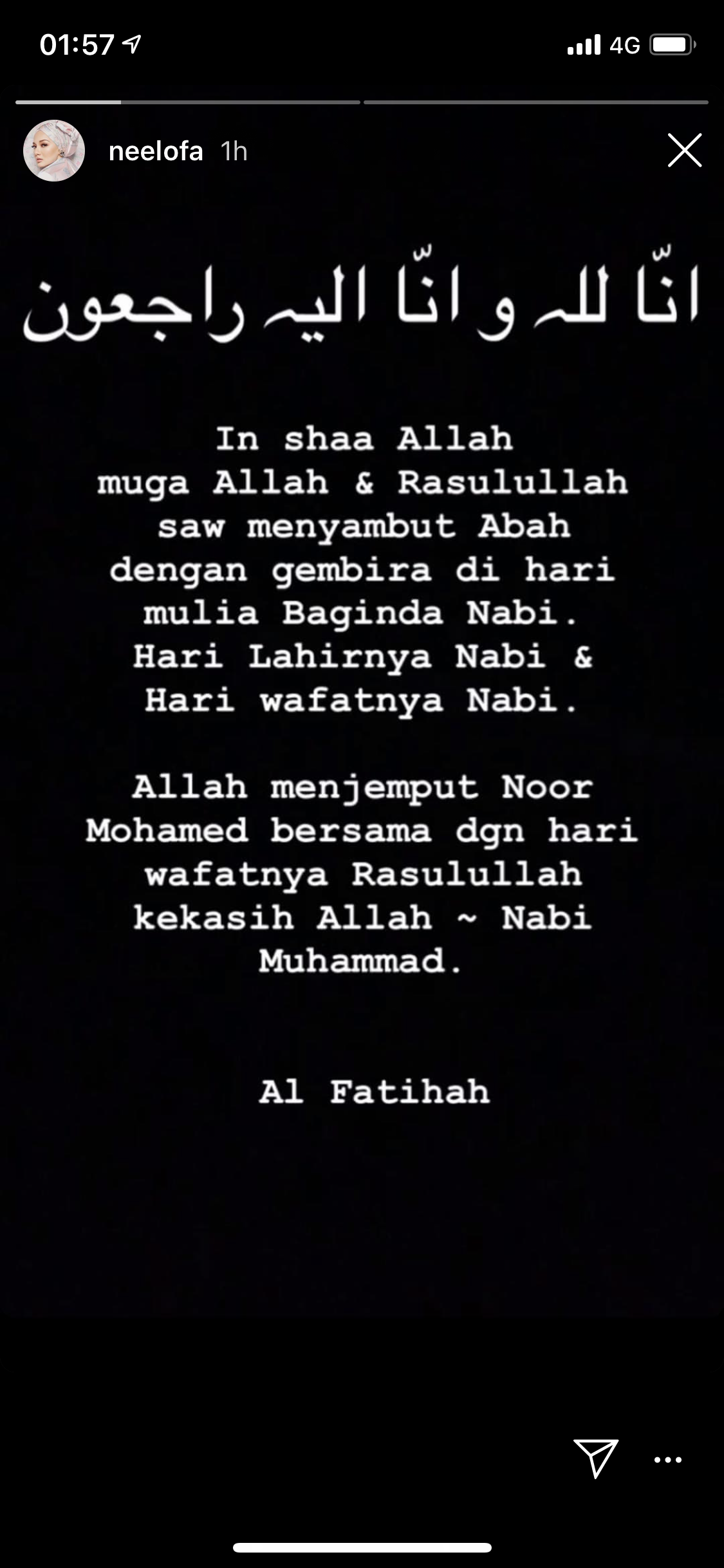 Salam takziah diucapkan kepada Neelofa dan keluarga atas kehilangan Allahyarham.