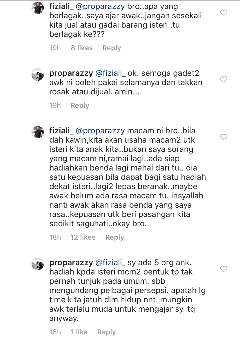 Fizi tidak berdiam diri malah terus menjawab.