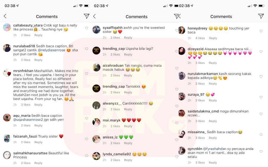 Di ruangan komen, rata-rata peminat tersentuh selepas membaca dedikasi istimewa Uqasha untuk adik kesayangannya.