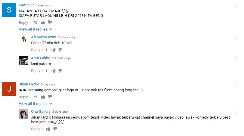 "Malaysia sudah maju, siapa putar lagu ini lebih dari dua kali kita geng!" tulis Samir 77.