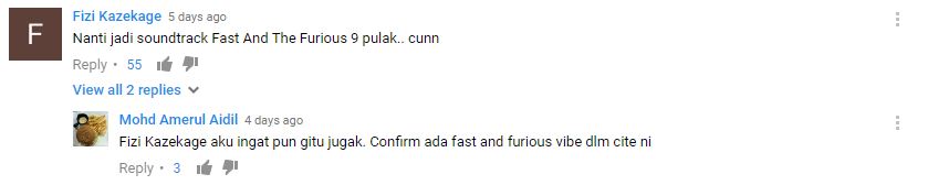 Malah, ada juga pengguna yang melihat lagu itu sesuai dijadikan lagu tema filem antarabangsa Fast And Furious 9.