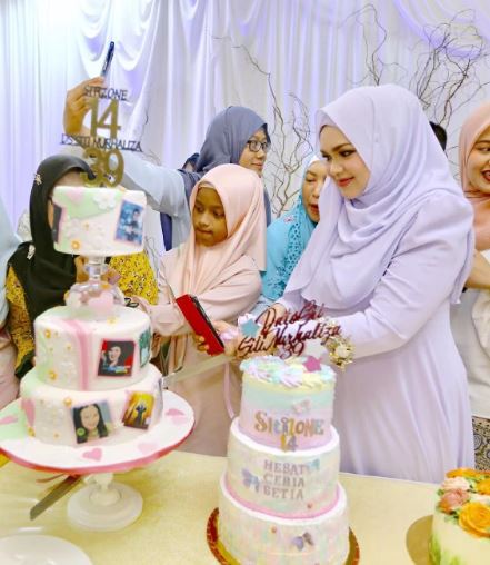 Siti ketika memotong kek ulang tahun ke 14 Sitizoner dan kek kelahirannya ke-39 bersama peminat