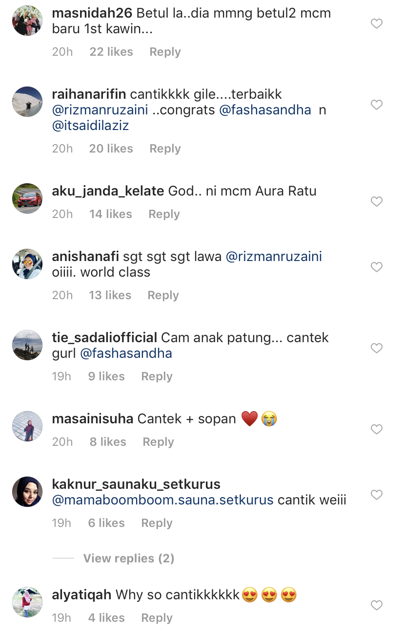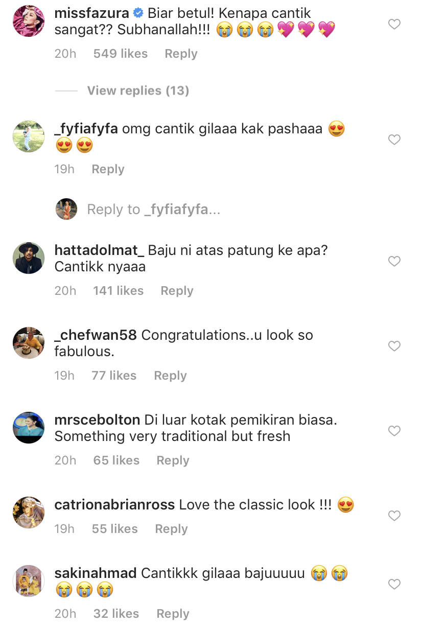 Rata-rata netizen tidak henti memuji kecantikkan Fasha menggayakan kurung moden kontemporari lengkap dengan pelapik dada adaptasi dari busana tradisional Negeri Sembilan.